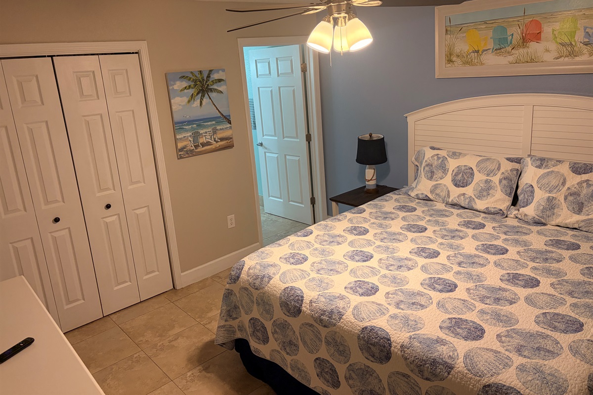 Master Bedroom with Full bathroom- walk in shower. And plenty of room in closet to hang your clothes up.